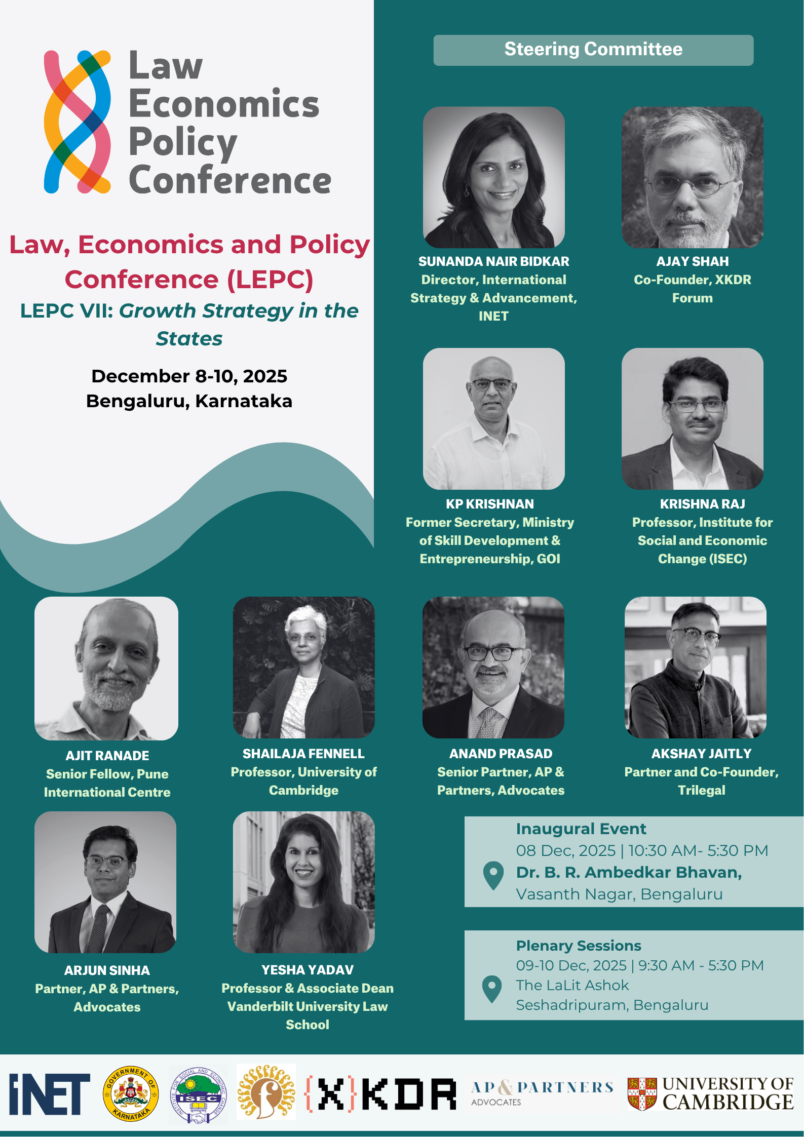 LEPC VII will be held in collaboration with the Government of Karnataka, ISEC, XKDR Forum, AP & Partners, and University of Cambridge. This edition will focus on the Growth Strategy in the States of India