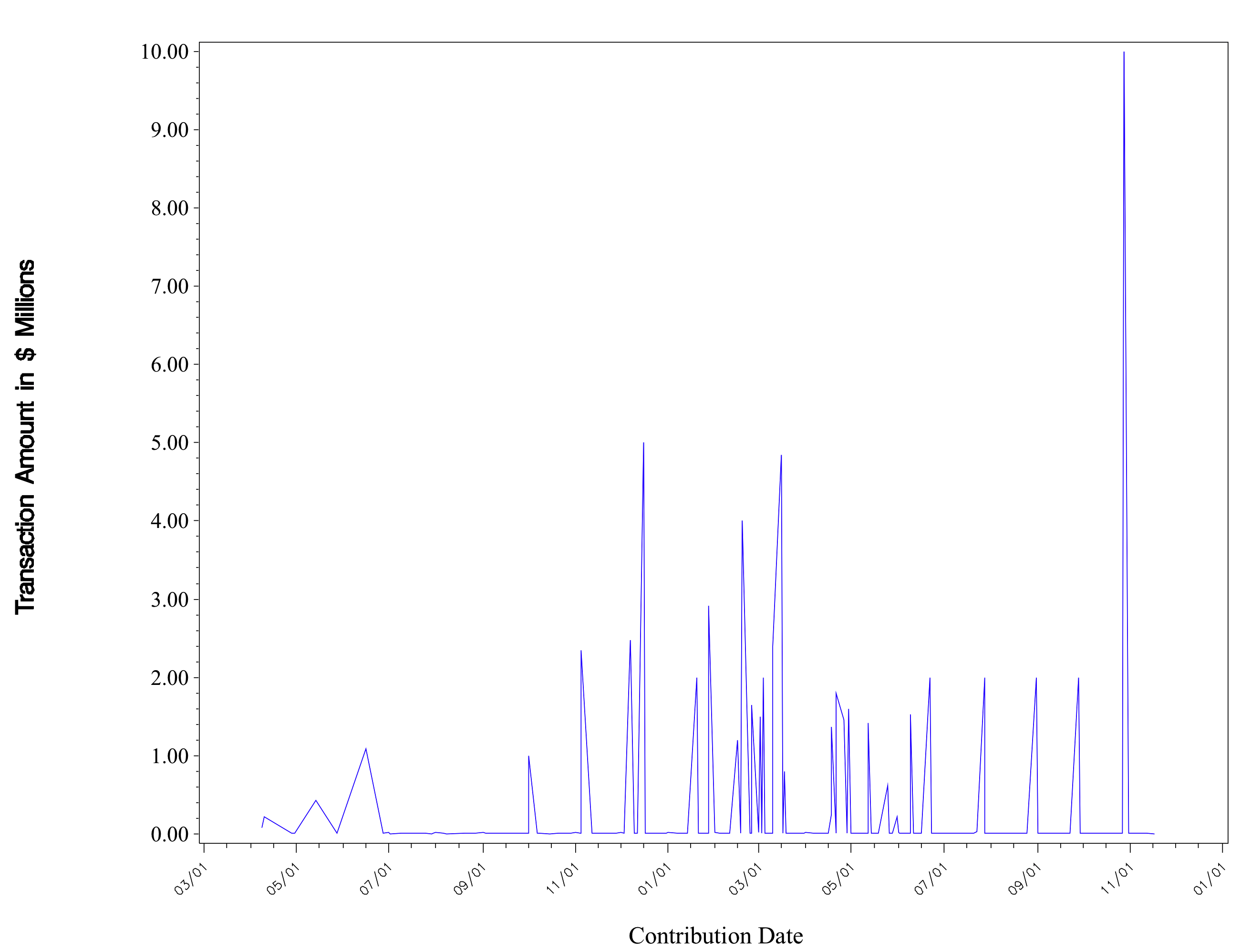 As the chart shows, Trump steadily advanced money in the form of both loans and contributions to his campaign, including some very substantial late contributions. Perhaps even more importantly for understanding the future, the Trump campaign (including allied SuperPacs and 527s) raised and spent more than $861 million—within reasonable hailing distance of the Clinton campaign’s $1.4 billion—although its serious fundraising began much later. Our paper analyzes the sources of that late money in detail for the first time.