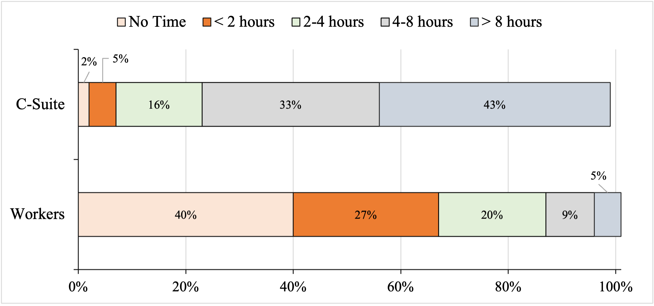 Figure 1 How Much Time Do You Think You Save Each Week by Using AI (Percentages) Source: Ellis (2026). Note: Totals may not add up to 100% because of rounding